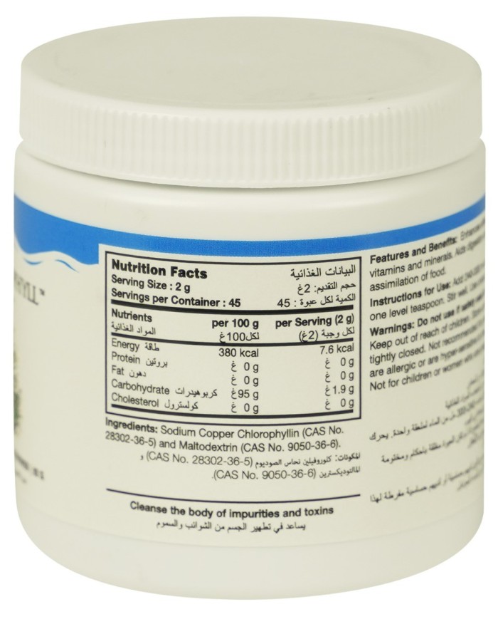 How to Use : Mix one teaspoon of Super Chlorophyll into a glass of water or juice, and drink once or twice daily for optimal results.